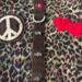 It has two patches, Austrian Crystals, a solid cast D-ring and three pewter charms.