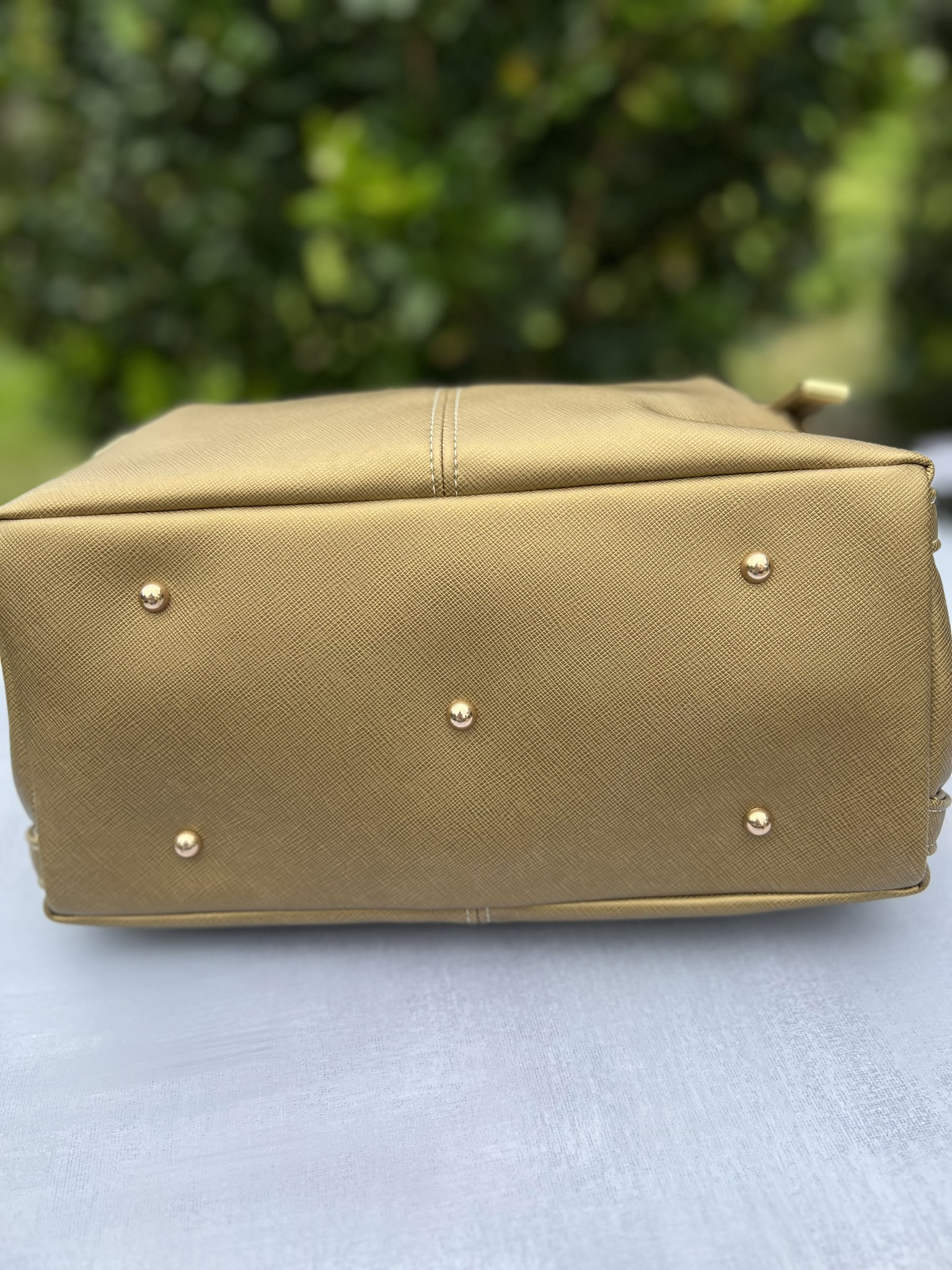Meet your new over-sized comfy, everyday handbag! This handbag features a classic and sophisticated design, ideal for everyday use or workwear. It is crafted from a textured faux leather material in a warm, golden crosshatch faux leather, with a subtle crosshatch pattern that adds depth and durability to the rich look, adorned with light gold hardware. I do NOT have any more of the gold crosshatch, so you will need to select a different color of faux leather on the exterior, and/or different colored hardware if you don't want this bag.