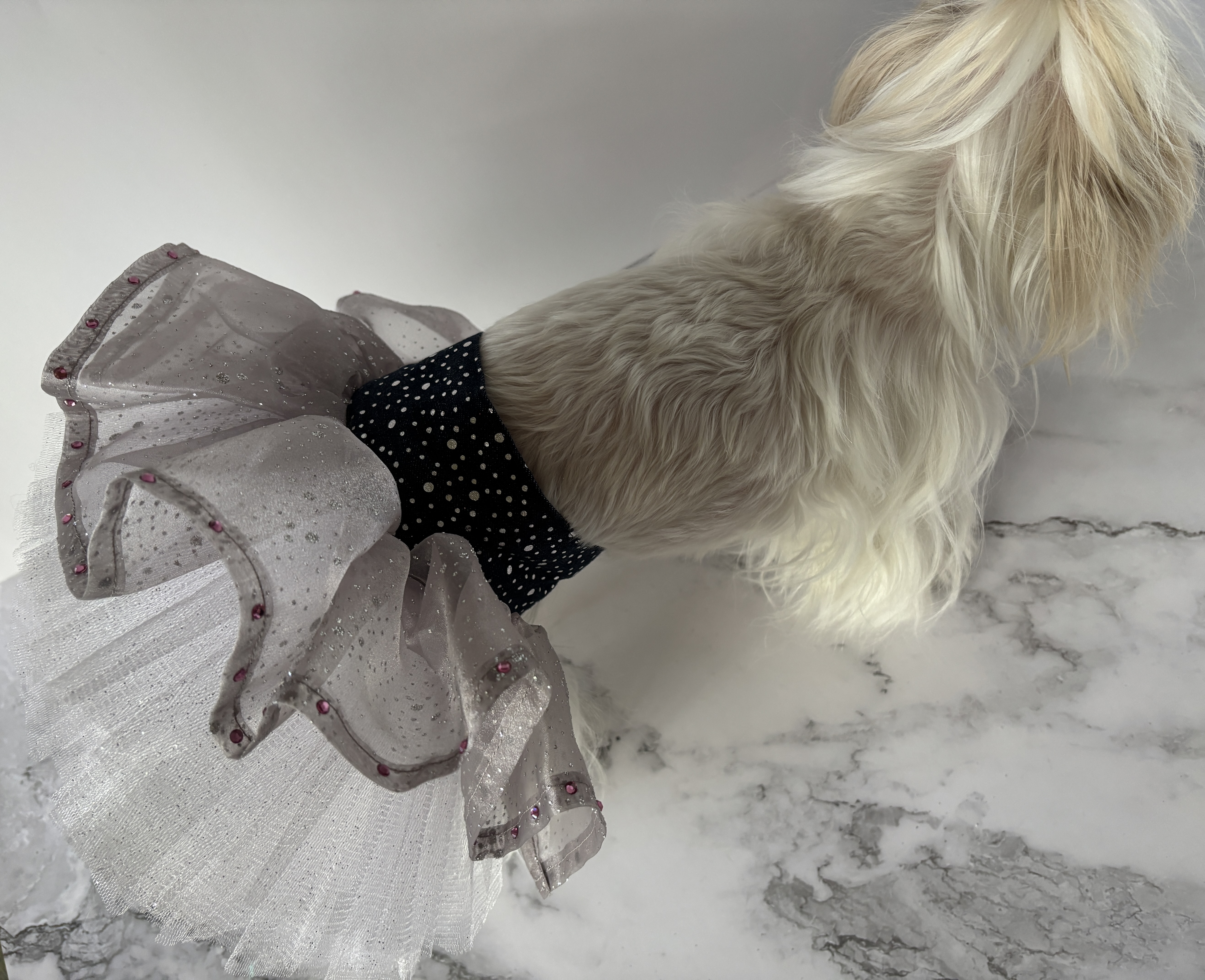 This tutu skirt will fit a dog with a waist measurement of 11" - 12.5". If you are unsure how to measure, please message me.