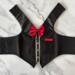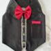 Mr. Pickles is too small for the vest, but he wanted to show you how handsome he is in it. This vest will fit a dog with a neck measurement of 12" - 13" and a chest measurement 16.5" to 18". If you are unsure how to measure, please message me.